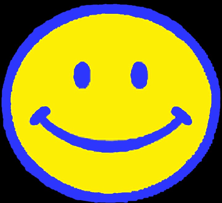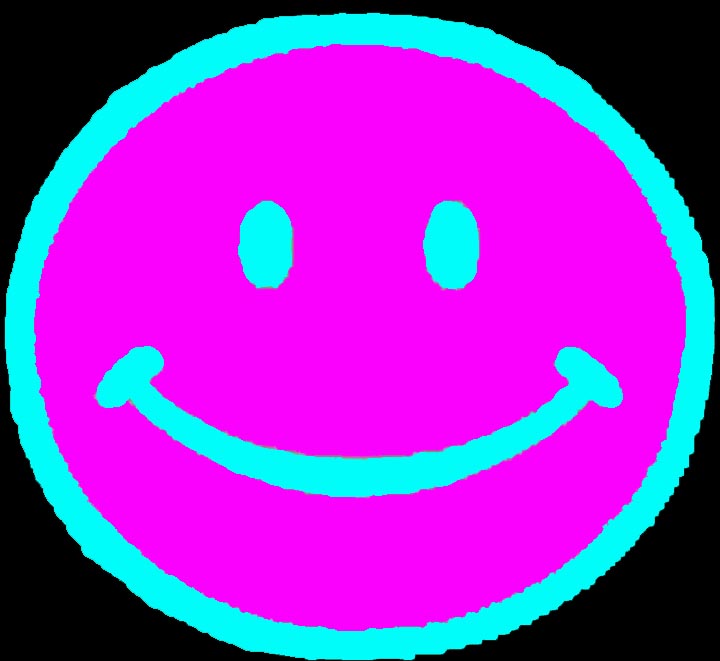 Negative after images can be seen without closing your eyes. Focus on the left eye of the previous happy face again and start counting. Depending on how fast you count, around 30 you should start to see darker magenta shadows floating around the left eye. What's happening is that because it's impossible to hold perfectly still, the eye moves slightly around the image. As it drifts away from the eye, part of the cyan-depleted area of the retina where the happy face's eye was focused is now over the magenta portion of the face. This strengthens the magenta color by adding a wash of red.
