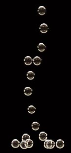 This images show the antibubbles seven times their actual size. The blurred bluish streaks behind them are remnants of burst antibubbles.