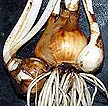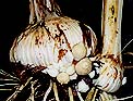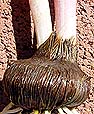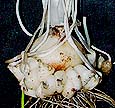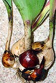 A cluster of secondary tulip bulbs surrounding the main bulb on the right.