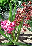 The bulb on the left is the size I planted: one and a half inches across. Upon digging it and its brothers up after ten months, half had grown to four times their original size (second from the left) while the remainder had divided to form two bulbs (third from the left.) Even more interesting, all of them had dozens of 1/4 to 1/2-inch diameter bulblets attached to them. Seeing all these changes triggered a series of questions: Are the bulblets created from the pollination of the flowers? Will larger bulbs produce larger flowers? If I cut the flowers before they can be pollinated, will that prevent the bulblets from forming? Can double bulbs be separated without killing them? Do other bulbs do the same things? What happens if they are left in the ground year after year?
