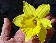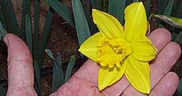 Both the King Alfred "type" and King Alfred bulbs looked the same, about 1 and 3/4-inches across. The King Alfreds gave me the impression of being heftier and a little larger on average than the King Alfred "type" bulbs. Additionally, a higher percentage of the King Alfreds were doubles, like the one pictured, than the "type" bulbs. I planted them all six inches deep and six inches apart.