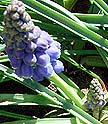 A surprise! I was looking around the muscari bed and noticed that each plant is putting out a second stalk of flowers. The new bud can be seen in the lower right hand corner of the following photo: