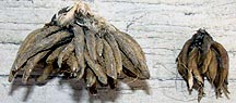 The photo above shows the difference between a premium jumbo tuber on the left (80 cents each) and a cheap Wal-Mart tuber on the right (15 cents each.) The jumbo isn't a bundle of several smaller tubers but a single large unit. Besides being larger, the jumbo tubers have a meatier look whereas many of the Wal-Mart tubers looked dry and shriveled as if they'd been baked in an oven.