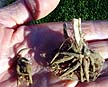 In the interests of science, I dug up one of the few double sprouted galds from the small corm area.