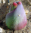 Even though the corm is a single, as opposed to being doubled, it produced two sprouts. I speculate that if this plant had been left in the ground all year it would have produced a double corm when dug up in Fall. If this is correct, it suggests a method for predicting which corms will double as opposed to growing a single larger corm.