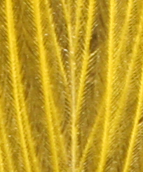 While images of black and white grids can tell a lot about what a lens can and can't do, they don't provide a feel for what the lens will do in the real world. Since I plan on using the Canon 100mm macro lens mainly for taking close-up pictures of hummingbirds and hummingbird feathers, I decided to see how it compared to my other two lenses, the Sigma 28-200mm zoom and a Canon 65mm 1-5x macro photo lens, by taking pictures of a feather. These images were taken with the front of the lens 24 inches from a feather. The section of the feather in these images is 0.25-inches tall. The following four images are all unprocessed crops, except for the second which is an up-sampled version of the first image to put it at the same scale as the remaining two images.