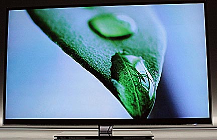 One very interesting development was Sharp's quad-color technology. In addition to the three colors all other sets use to produce the 16 millions colors required to satisfy most viewer's demands for accurate color rendering, Sharp has developed a TV set with a fourth yellow pixel to broaden the range of the color gamut. The principle is the same used by many high end printers that use 6, 7 and even 8 different colors to produces more realistic pictures. The question is: "Where does the yellow come from?" The answer is that when a digital camera sees yellow, it converts it in a mixture of blue and green. In a sense, it compresses the yellow information into the blue and green channels. When this image is sent to a TV, the TV mixes blue and green (uncompresses it) to make the yellow. The weakness with this system is that the yellow channel has to be manipulated twice. Sharp's new sets eliminate the TV manipulation thereby improving the set's color accuracy. At least that's the theory. Their displays of this technology featured brilliant videos of fields of waving yellow sunflowers with the set's saturation turned up to maximum to emphasize the colors. Non-quad sets next to these appeared de-tuned creating an unfair comparison. Still, it's an interesting technology. Perhaps in the future there could be 4 or 5-color cameras and TV sets. The question is whether the improvement would be significant enough to justify retooling the entire industry.