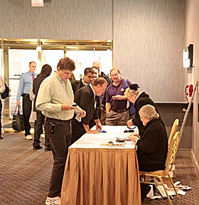 The line at the typical hotel check-in is much shorter than at the convention center.