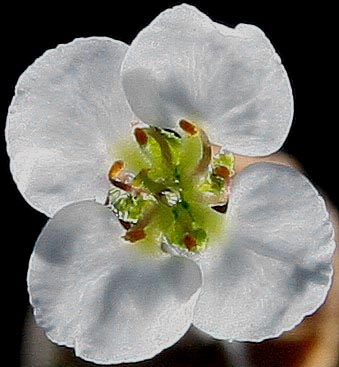 To answer this question I took some pictures of a very small (0.24-inches across) flower called sweet alyssum. Here's what it looks like in actual size, assuming your monitor is set to the standard 72ppi default: