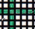Here's what the test grid looks like through the 200mm lens without any attachments. Each square in the grid is 0.058 inches on a side. They can't be seen clearly because they are so small and regular that digital effects (called moire) prevent them from properly displayed. The following picture is a close up of the grid to prove the squares really are there: