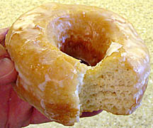 I can't remember what insane impulse drove me to try making raised doughnuts at home. After all, they're so inexpensive you have to wonder why anyone would bother. Yet attempt making them I did... and failed miserably. They were greasy, chewy lumps that I wouldn't feed to a dog. Frustration fired determination and before I knew it I'd spent two weeks frying doughnuts almost every day, gone through 20 pounds of flour and put on almost as much weight from tasting them. But, perseverance paid off and by the time all was said and done I managed to figure out how to make a doughnut that was as good as what's available in doughnut shops. This page presents my technique so that anyone finding it might be saved some of the frustration with which I had to deal.