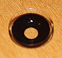There were three problems. First, the 4.5 millimeter opening was too large to significantly reduce glare. Second, the opening in the contact lens and the opening of my real iris formed a pair of apertures that created a tunnel effect. When looking through the eye there was a soft, dark ring around the outside, similar to below: