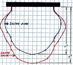 Values for 20 passes over a clad dime buried at 3 inches ranged from 5.5 to 9.5 with an average of 7.8. A silver dime ranged from 7.5 to 10.5 with an average of 9.0. The system seems to work for small coins, but is shifted down 1.0 points.
