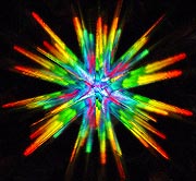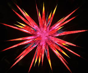 The following is a second-surface mirror kaleidoscope with narrow rays cut into the sides to create a sphere of outward rays to simulate an exploding star: